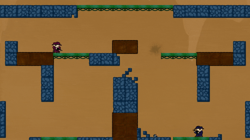 Grab your friends and stock up on grenades for this fast-paced single-screen local multiplayer shooter! Compete with each other in an environment filled with destructible terrain that crumbles around you from your bullets and grenades! Run, jump, and dodge your way through the destruction with simple controls and intuitive physics. With gameplay that’s easy to pick up but hard to master, Cavern Crumblers is sure to give you and your friends an exciting couch gaming experience for hours on end.