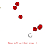 You start off with a very low speed and a timer that is three seconds long. If the timer runs out then you will lose. The timer restarts every time you collect a coin. Enemies will start coming in from off-screen. As you collect the coin, the speed of the enemies will change. You can’t shoot them yet because you have to unlock it by upgrading the bullet damage upgrade. So, you will have to try avoiding them until the first bullet damage upgrade is purchased. Each coin you collect will not only reset the timer, but it will also add more to your money which you can use to buy more upgrades. Upgrades are awesome.