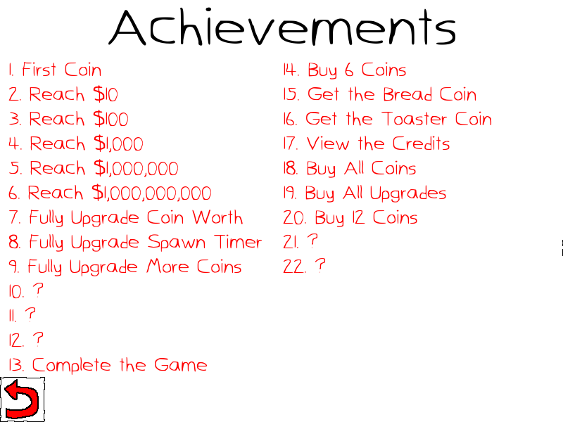 Wait a little bit and a coin will spawn. Click the coin to earn money. Then, use the money to buy more coins, which are worth more money, and upgrades. Unlock achievements along the way. Try unlocking the secret achievements as well! Facebook Twitter Google+ LinkedIn Pinterest Leave a Reply Cancel reply Δ