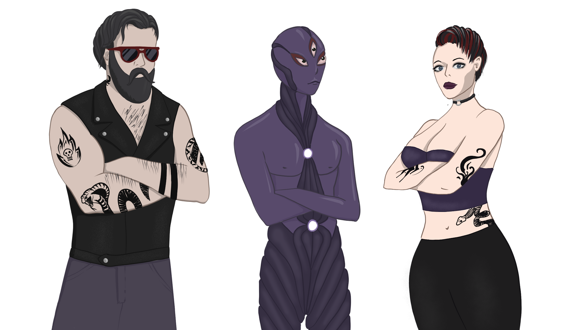Select a character’s skin (gender) you like, and change it whenever you want during the game. There are three skin types supported: alien, female, and male.